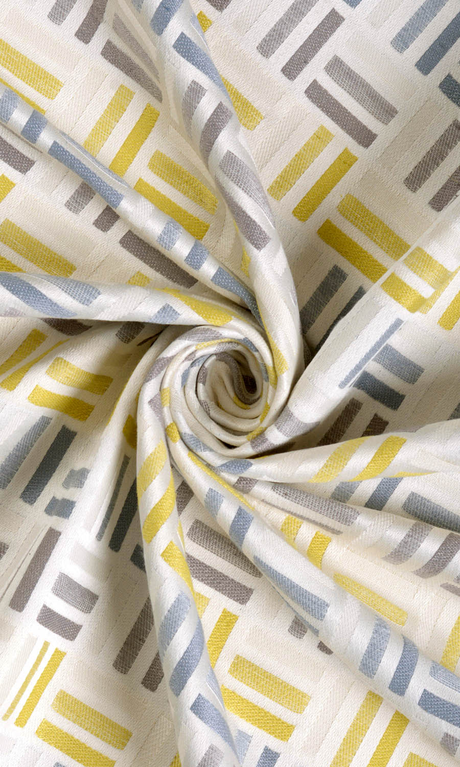 Ladder meets checks style weave with shaded effect. The color palette of yellow, grey and pale blue on white backdrop is bright and cheerful. On the whole, this drapery fabric is just happiness, happiness, happiness.