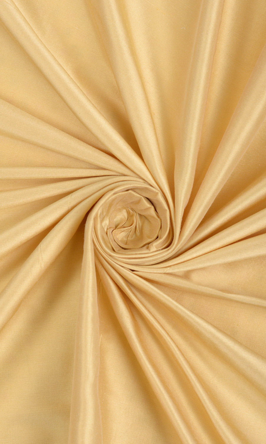 If a magic spell could recast sandstones into silk, it would surely look something like Sunset Wave. Lustrous and luxurious, this pure silk drapery material has a regal air that transforms regular interiors into dream rooms. The sandstone beige color has golden undertones that create the perfect backdrop for crystal chandeliers and plush velvet sofas.