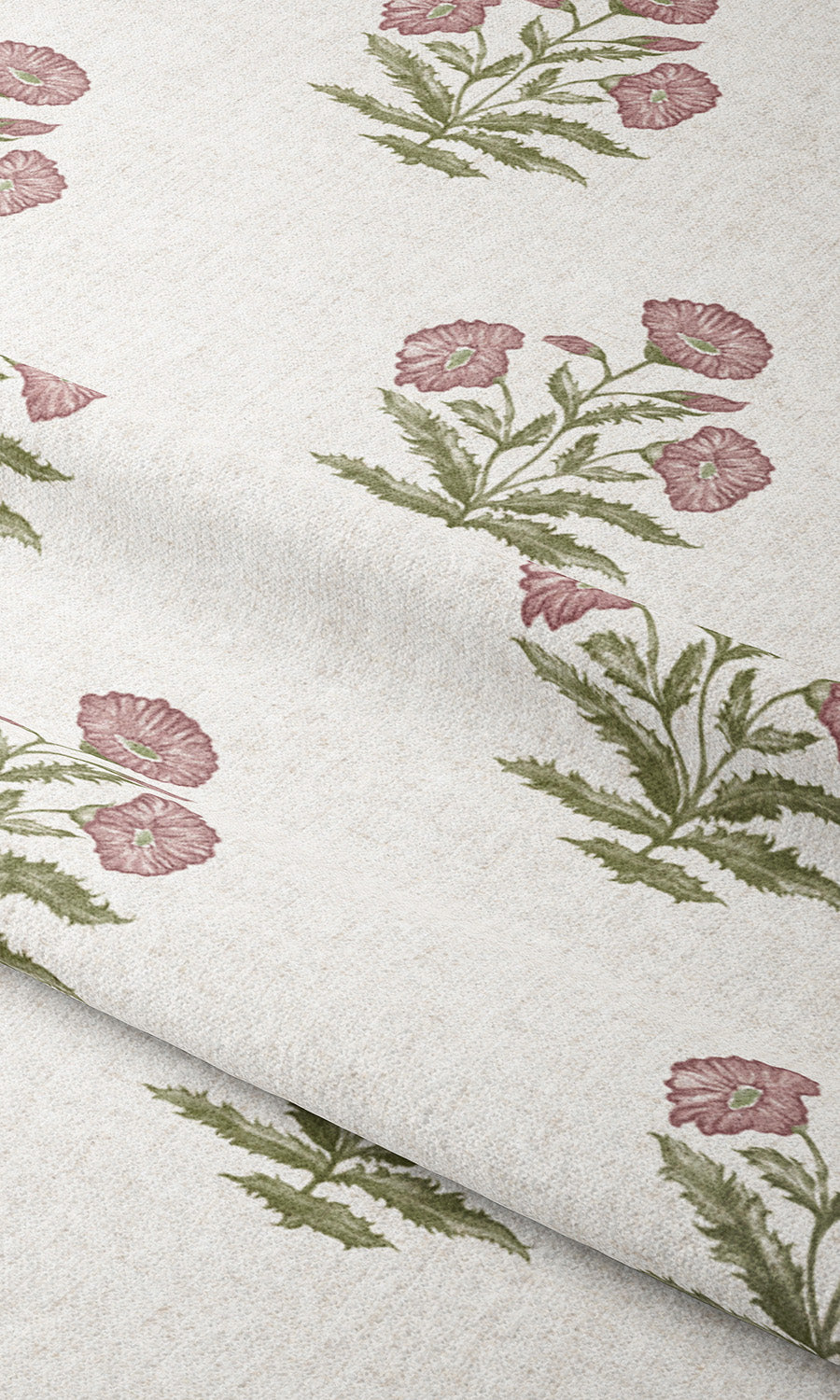 - Its hand-blocked Indian poppy motif, scattering a garden's grace, and stamped with heritage elegance
