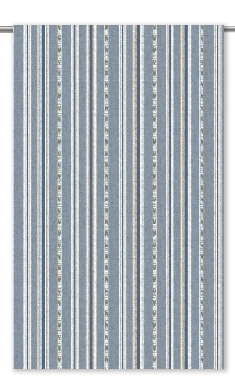 • Its bands of cornflower blue and white, peppered with taupe accents