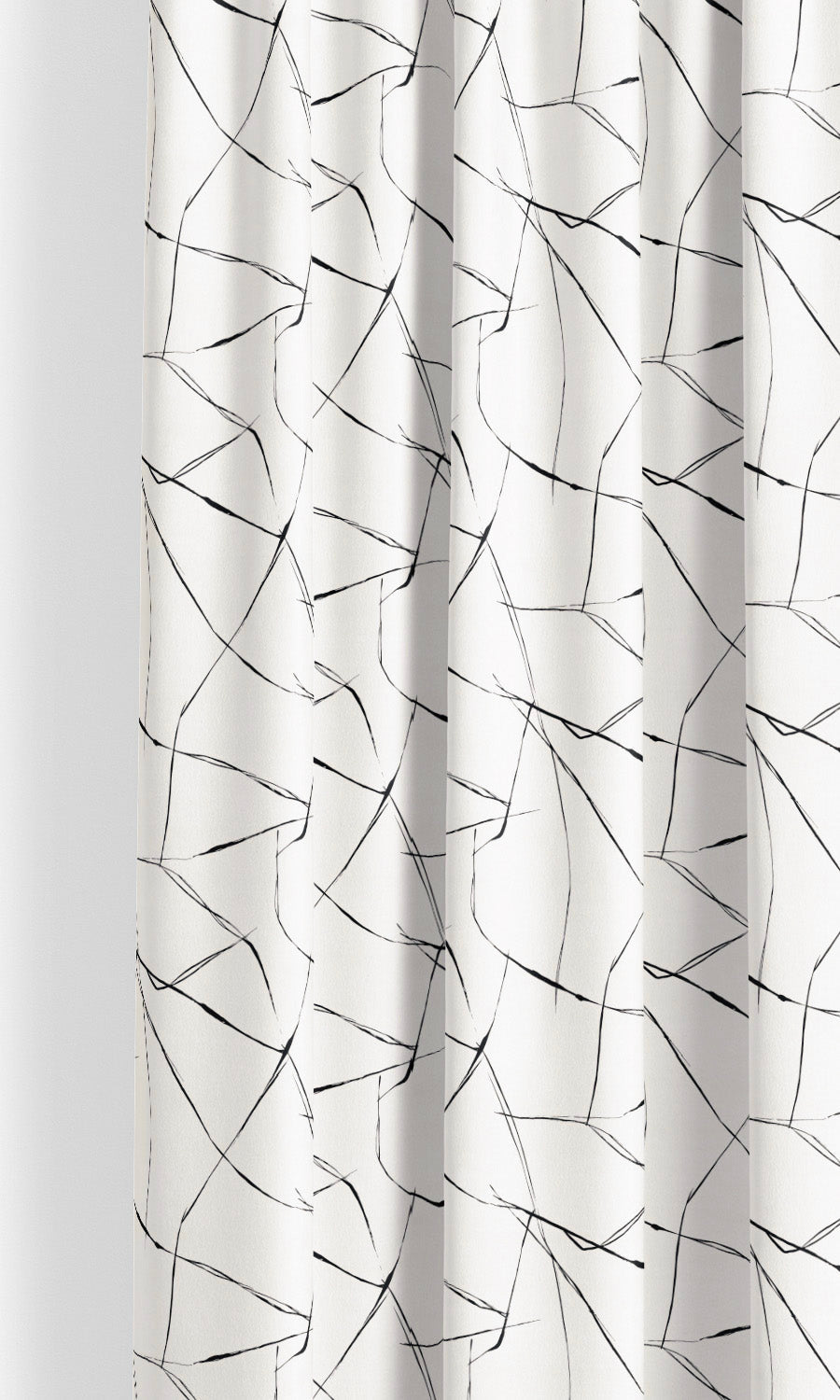 - Incorporate pattern without using color: Use Teodoro curtains to counterbalance strong, saturated tones. Although their unique crackle pattern steals the show, the subtlety of their black and white combination keeps them understated, allowing the bolder elements to shine.