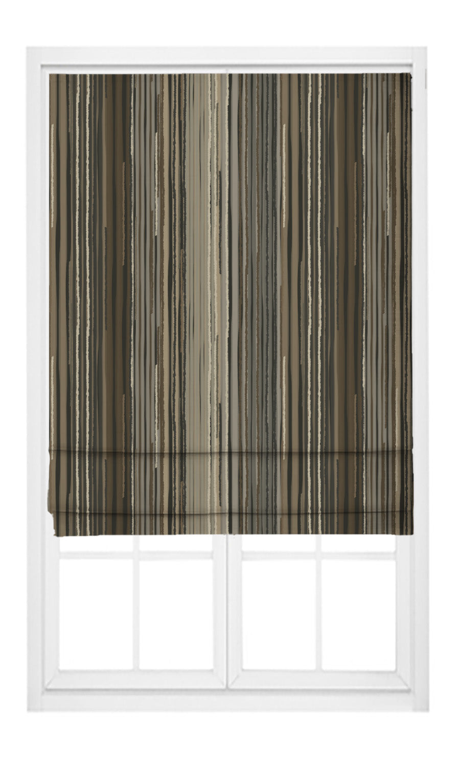 - Choose outside-mounting to accentuate window height: Outside-mount this striped roman shade a few inches above the window to elongate the window optically. This elevated position, coupled with the pattern's linear pattern, will woo the eye upward, making the window appear longer than it is. Further, the shade will completely clear the window when folded up as it stacks on the wall, instead of blocking the pane.