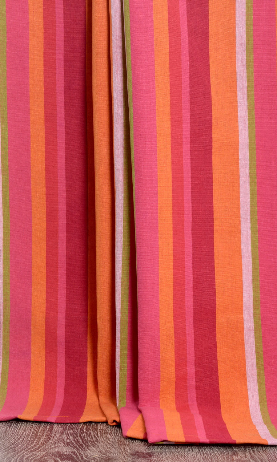 Part of our swoon-worthy cotton collection, Tipsy Bar features a vertical woven stripe with plenty of interest. With a raw, softly tactile feel and its body of cool tones of pink and orange, Meru feels like a modern take on cotton, so relaxed and full of flavor. This medium weight cotton falls beautifully and never fails to impress - no matter what the heading style - from the fullness of pinch pleats to the minimalist look of the eyelet heading.