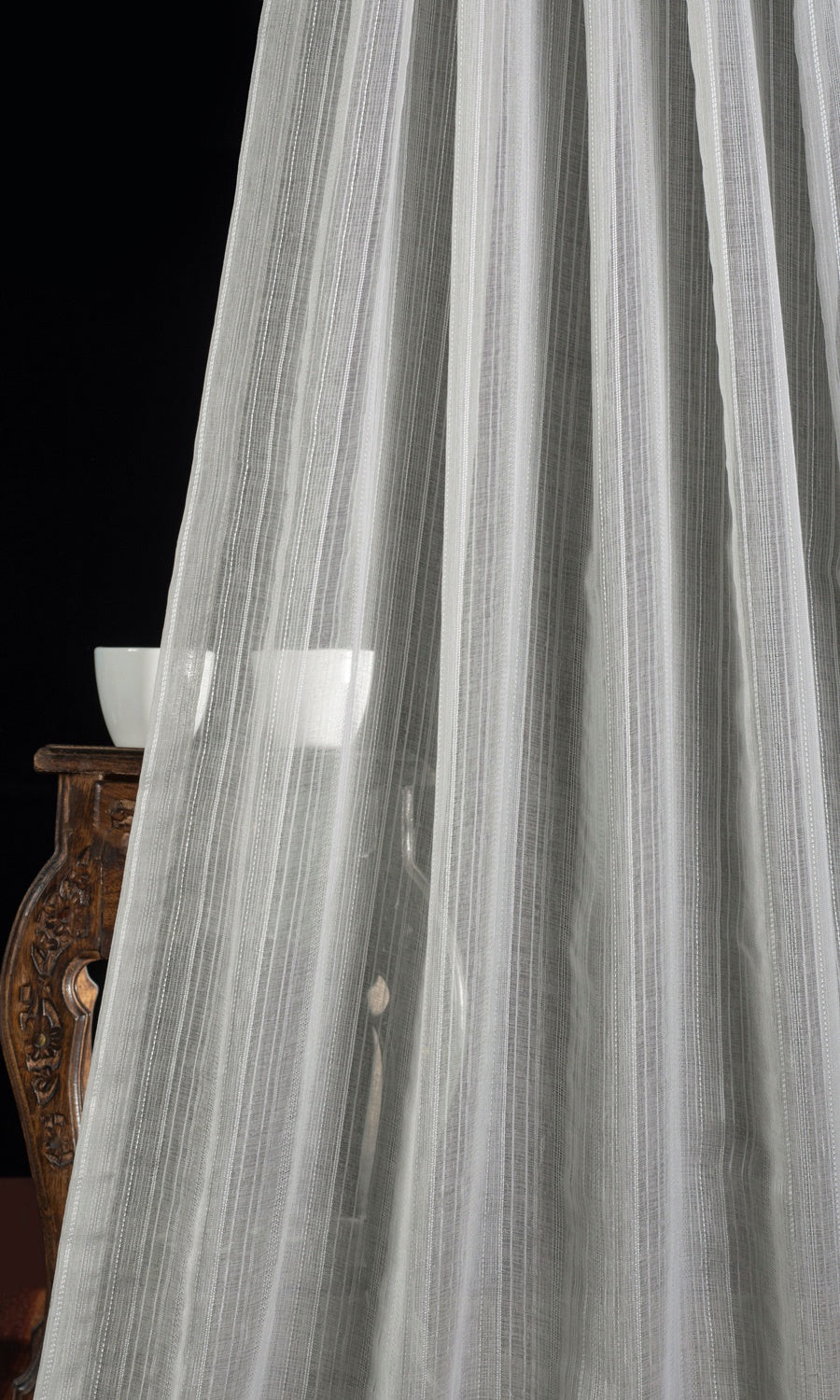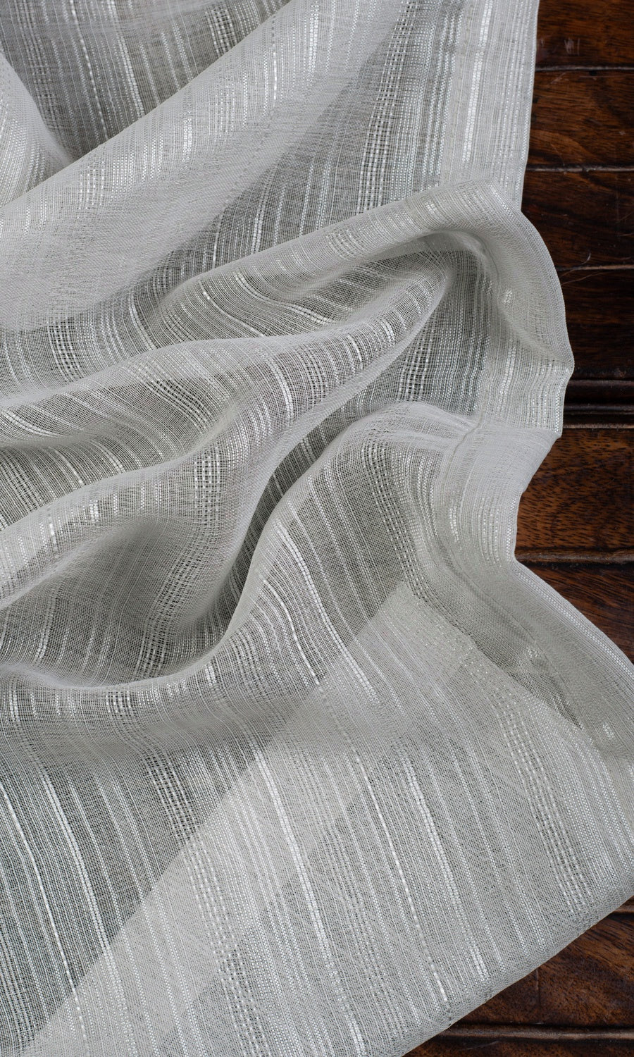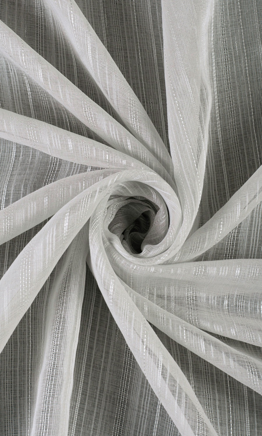 The most striking aspects of a decor style are sometimes conveyed through the subtlest detail, as in the textured weave of this sheer that hides a delicate stripe pattern. Airing a minimalist aesthetic with its woven striped pattern and a neutral palette of grey, 'Titanium' offers dreamy elegance with a modern sophisticated edge. Keep your home bright and breathing with this sheer at your window, while guarding your privacy during the day.