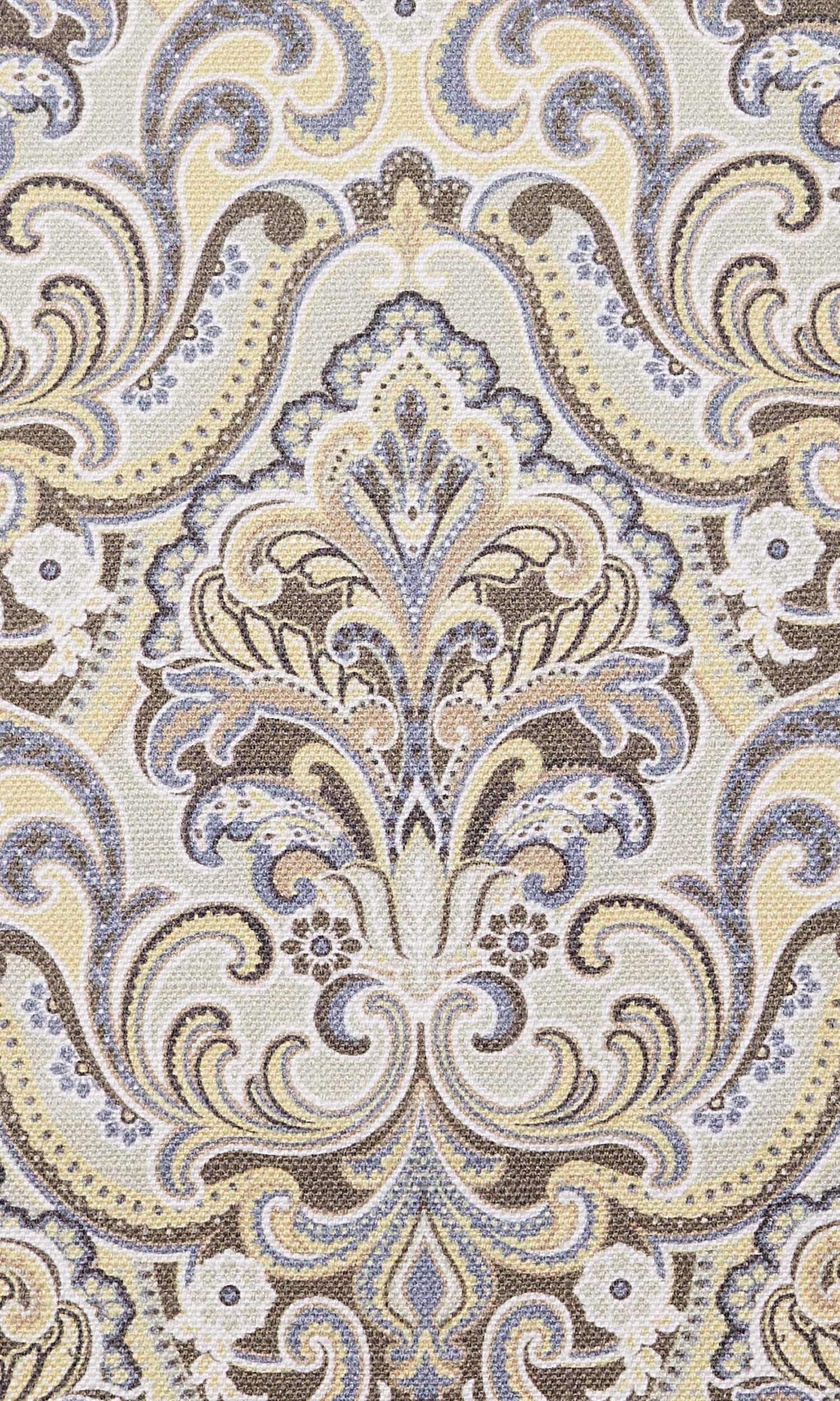 Evoke an aura of grandeur in your spaces. Printed all over with delicately swirling Fleur de Lis pattern in pale yellow and slate gray on a pale ash backdrop, it reflects ultimate sophistication and good taste. It's classic French chic all the way!