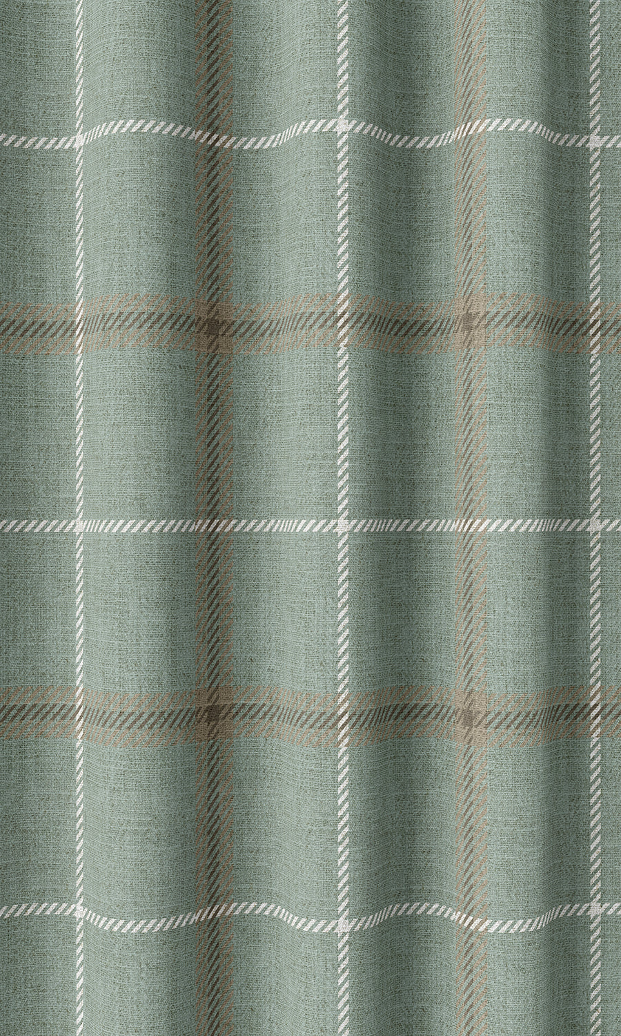 Featuring a big-block plaid pattern of white and browns on a fresh duck egg blue - hues that lend a contemporary twist to the otherwise traditional pattern. Whether you're fashioning a mid-century modern living room or a contemporary-chic dining space, you can use this vivacious fabric for drapes and shades that never fail to impress.