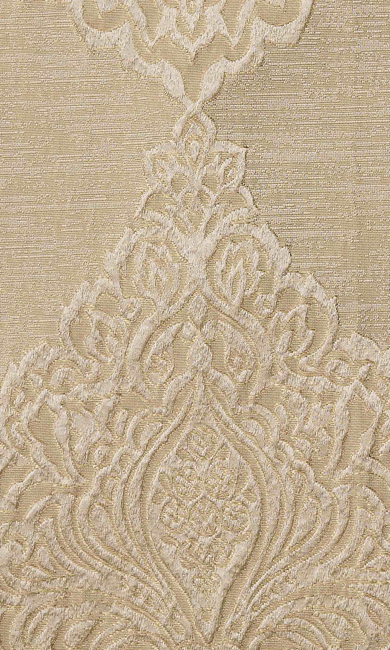 This Victorian-look fabric in soft beige and champagne gold has an elegant damask weave, classic foliage pattern, geometric placement and eye-catching emboss effect. The mild sheen and the textured effect give an aristocratic aura. A drape fit for a palace!
