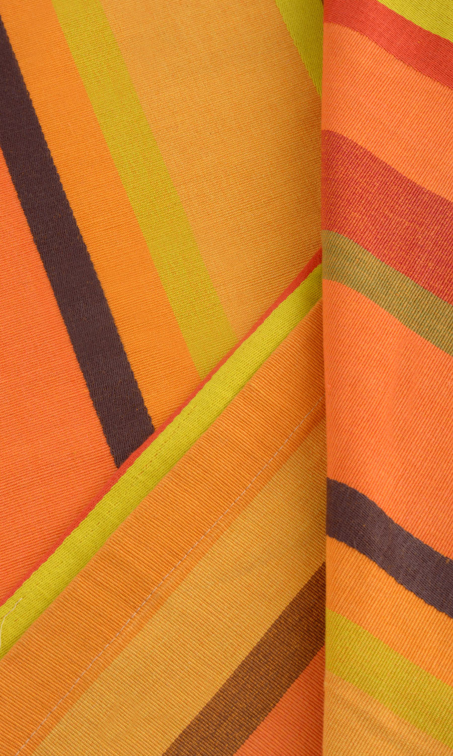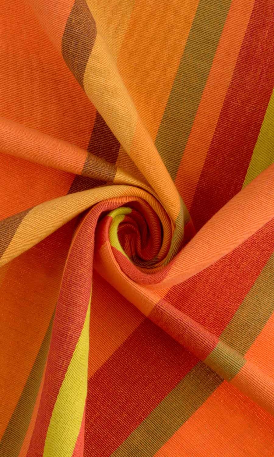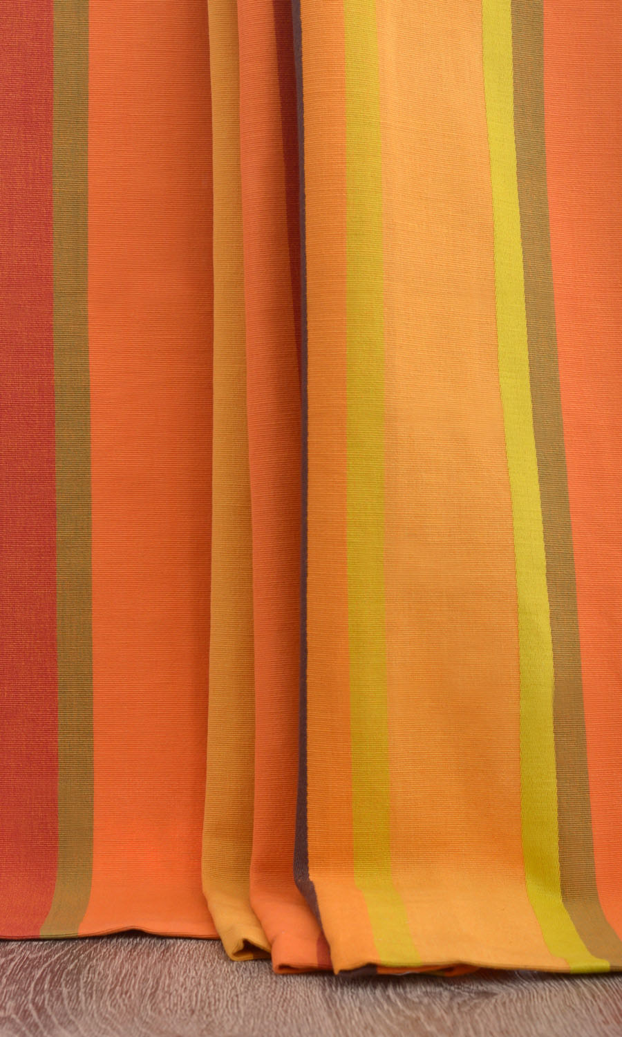 Part of our swoon-worthy cotton collection, Vision Empire features a vertical woven stripe of autumnal colors. The pattern holds plenty of interest as does the palette. With a raw, softly tactile feel and its body of orange and yellows, Vision Empire feels like a modern take on cotton, so cozy and full of flavor. This medium weight cotton falls beautifully and never fails to impress - no matter what the heading style - from the fullness of pinch pleats to the minimalist look of an eyelet heading.
