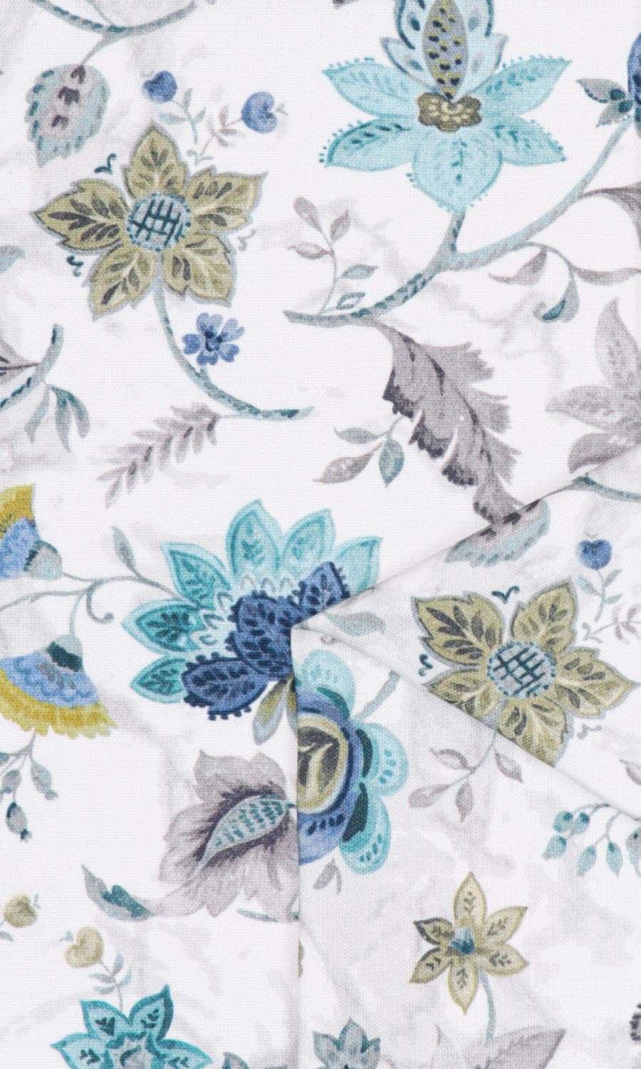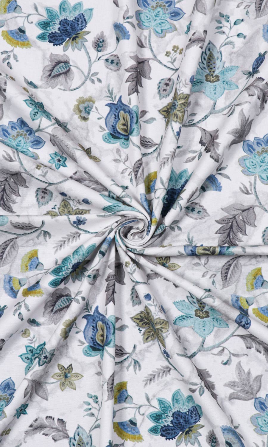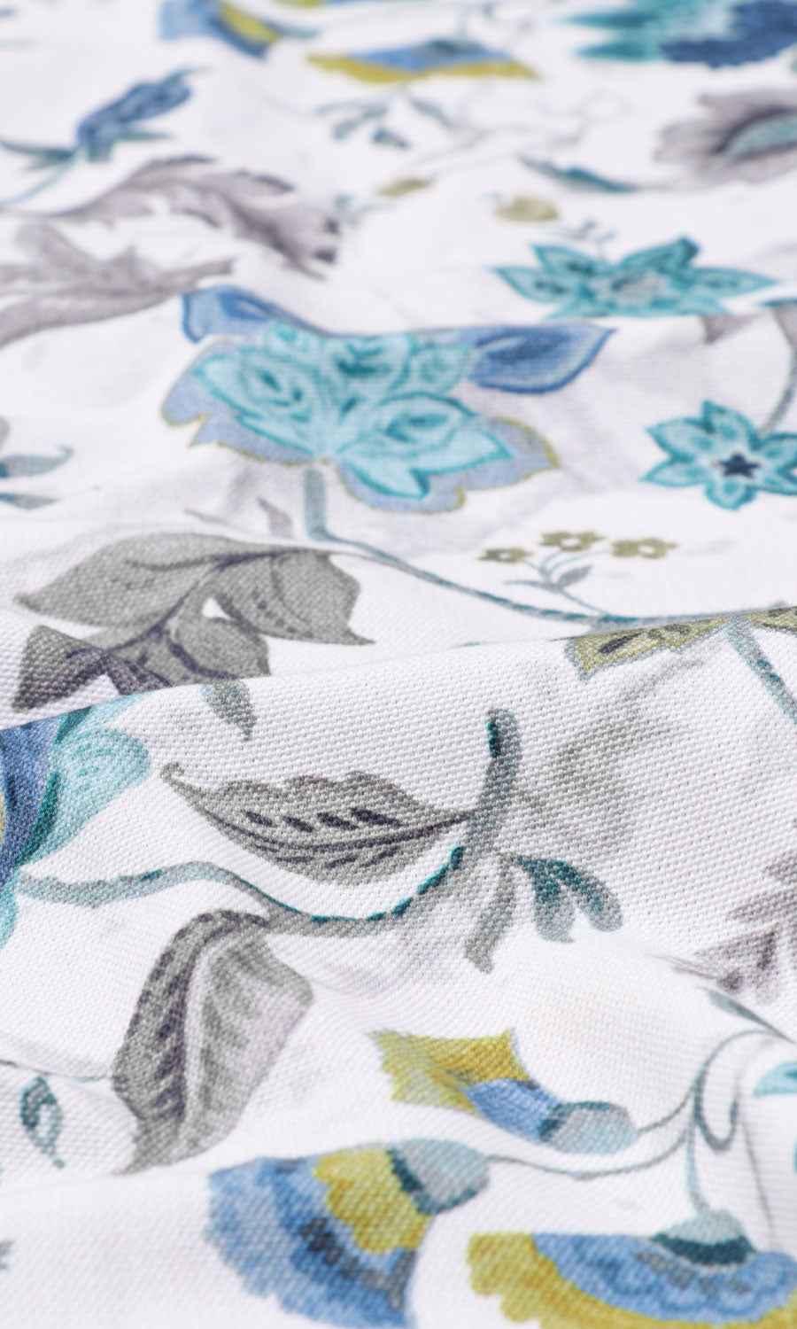 Subtle yet striking, this fabric brings traditional Indian floral motifs with curlicued details. Understated gray leaves recede to the background leaving the stage to delicate blue-tinged flowers. Embodying eclecticism mixed with sobriety, Warli suits both detail-rich bohemian interiors and nature-inspired feminine spaces, embodying a blend of charm and subtlety.