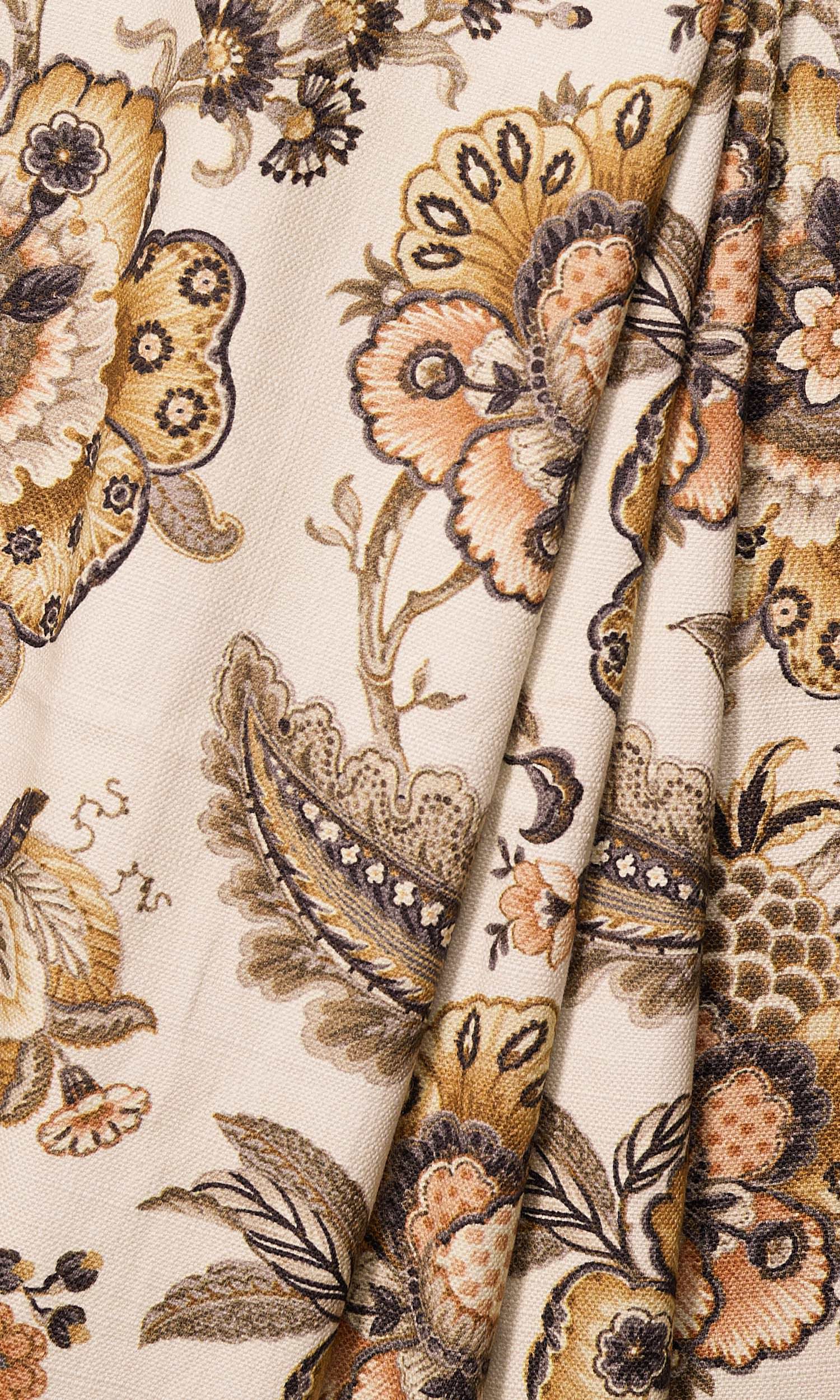 This simple yet stunning fabric combines a charming floral print with soft and subtle shades of beige and gray on a cream backdrop. Perfect for those who like florals but want to avoid sharp contrasting colors. A truly sophisticated choice.