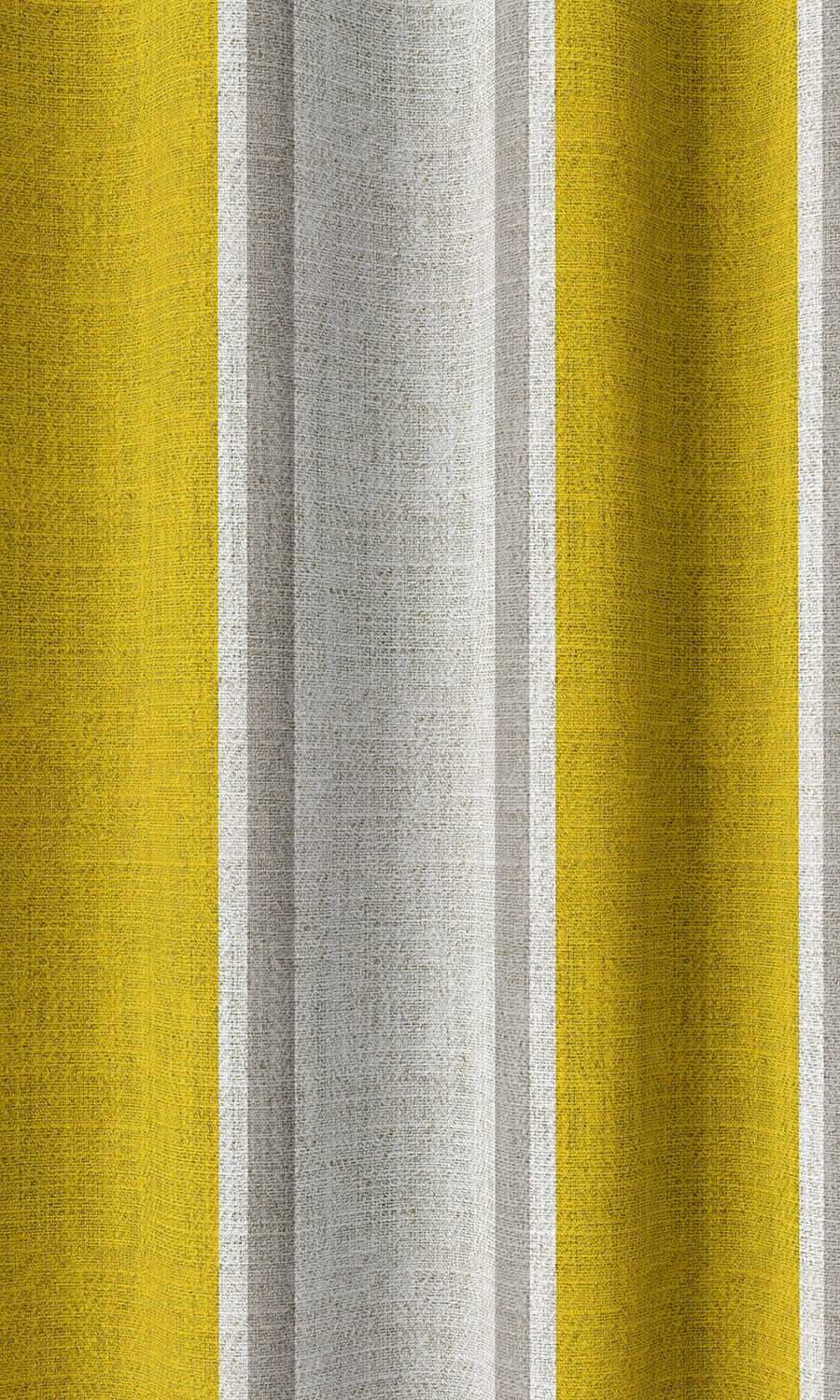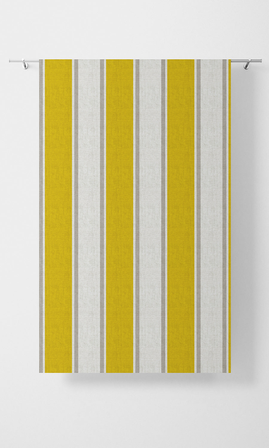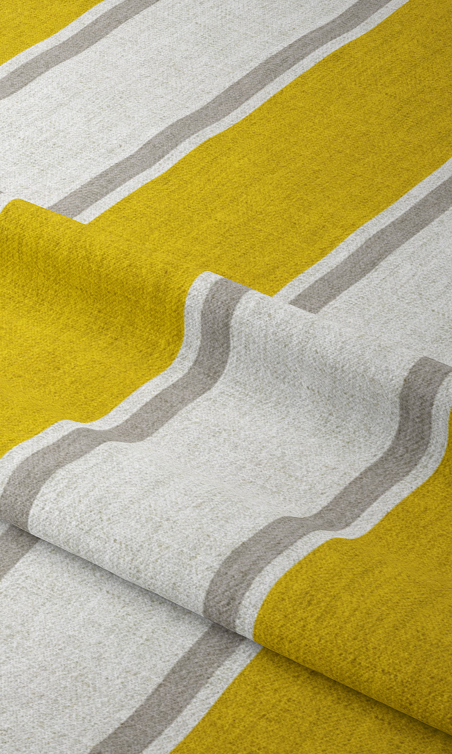 Featuring the most cheerful palette, this sunny fabric is made for cozy kitchens and inviting dining rooms. It boasts a trend-right colorway of sunflower yellow, linen white and cool grey, complemented by a bold pattern of wide and slender repeating stripes. Its yellow lends it a pop of pizzazz, but not so much to detract from other elements at play in your decor. Its designer flair makes it suited to upscale looks as well as relaxed, contemporary settings.