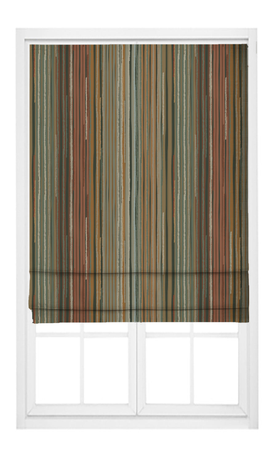 - Choose outside-mounting to accentuate window height: Outside-mount this striped roman shade a few inches above the window to elongate the window optically. This elevated position, coupled with the pattern's linear pattern, will woo the eye upward, making the window appear longer than it is. Further, the shade will completely clear the window when folded up as it stacks on the wall, instead of blocking the pane.