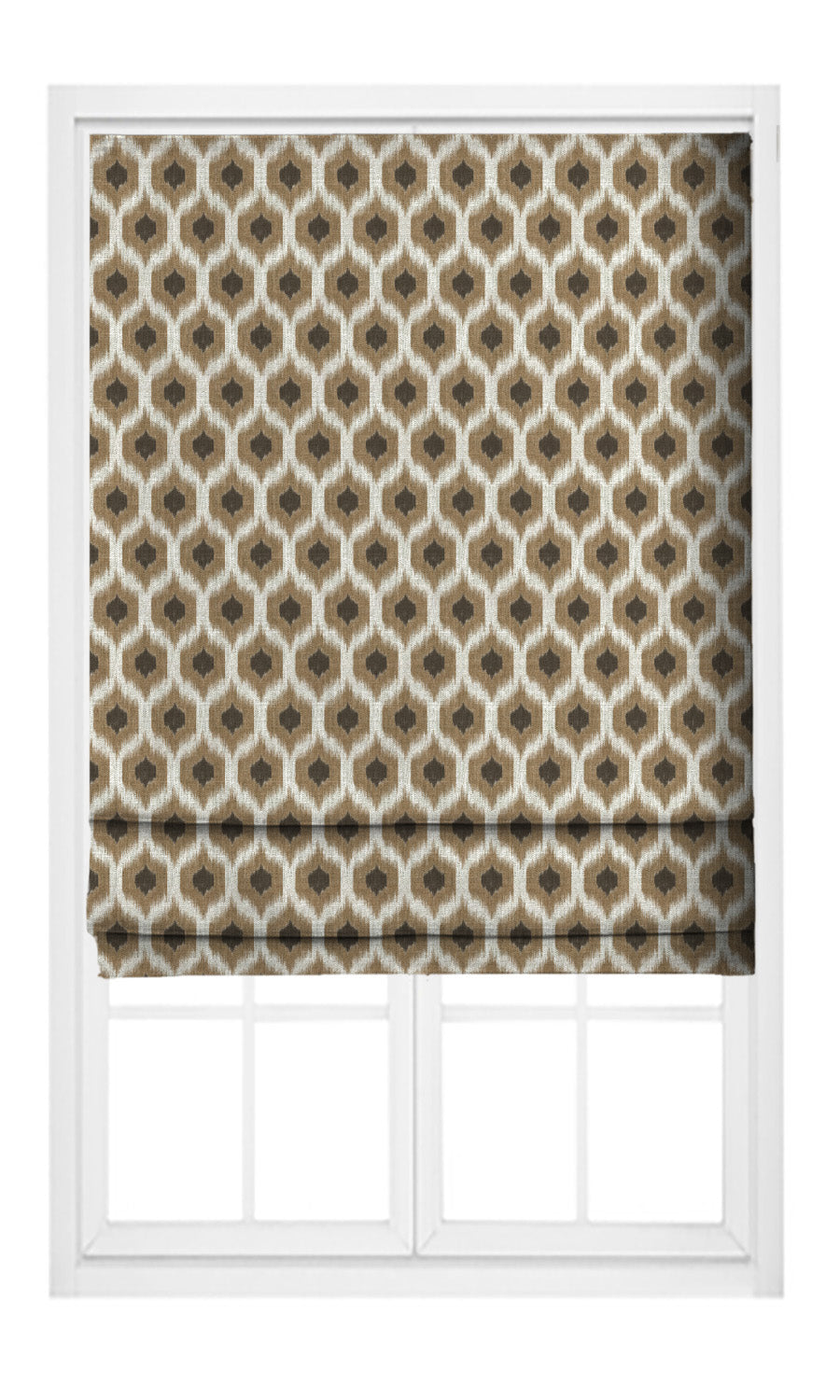 - Enhance eclectic personality: Weave in an eclectic spirit into your decor with Wheat Cone ikat-inspired roman shades. Their ethnic motifs echo oriental craftsmanship and artisanal heritage, layering your home with warmth and authenticity. Pair them with kilim rugs, tribal accents, and woven textures to create a space that feels both rooted and collected.
