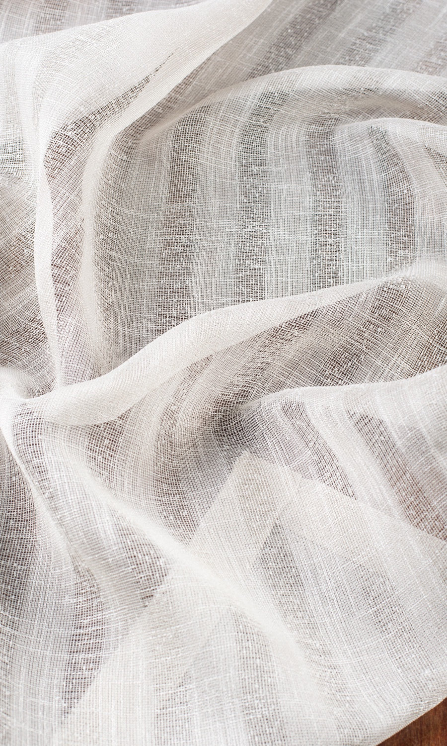 A white sheer that unfurls bold awning stripes! Welcome the sun's soft glow as you let this subtle pattern play elevate the pared-back sophistication of a patternless room or counterbalance the extravagance of a pattern-loaded decor. Watch your interiors get dappled with fluted shadows as light and shadow play hide and seek with Whisper Soft self-patterned stripes and gauzy texture.