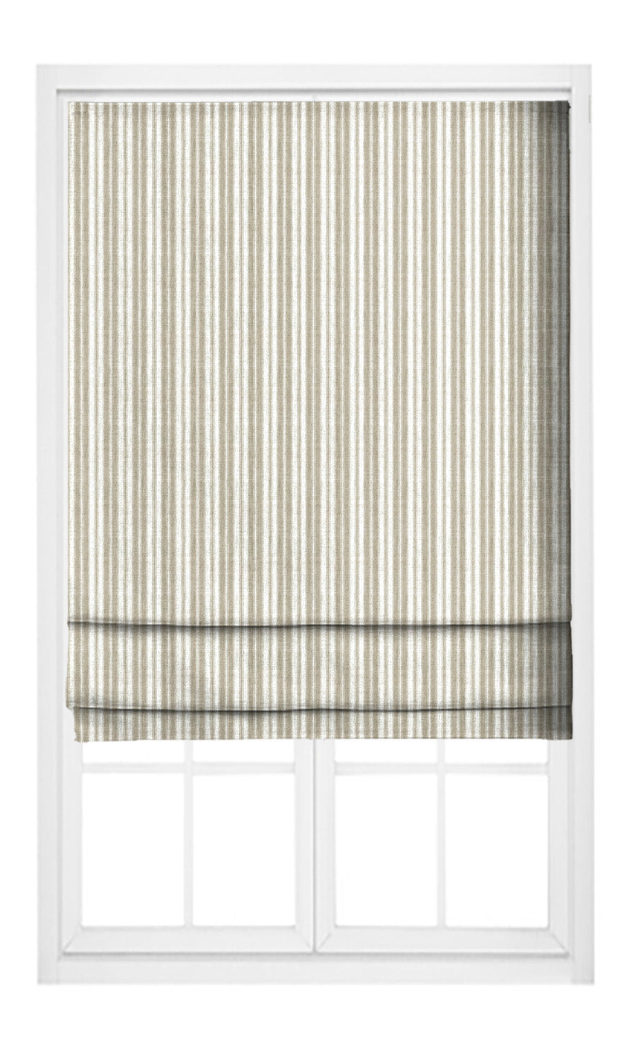 - Add to modern farmhouse settings: Lend modern farmhouse-style homes the earthy charm of White Pearl beige striped roman shades. Their unassuming beauty feels right at home where simplicity reigns and details are streamlined.