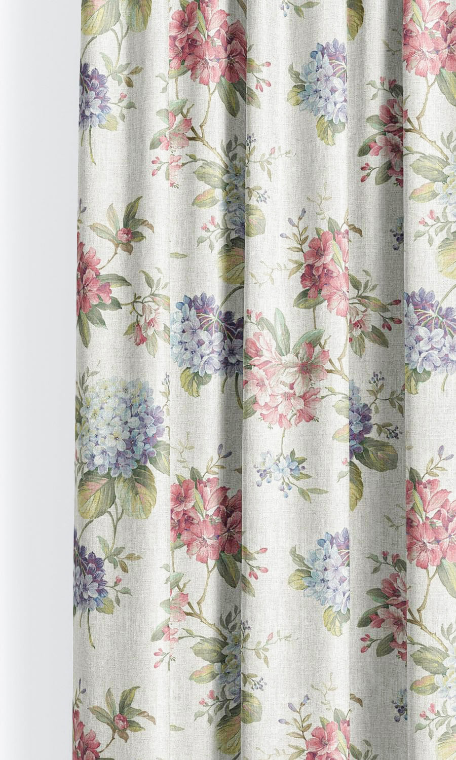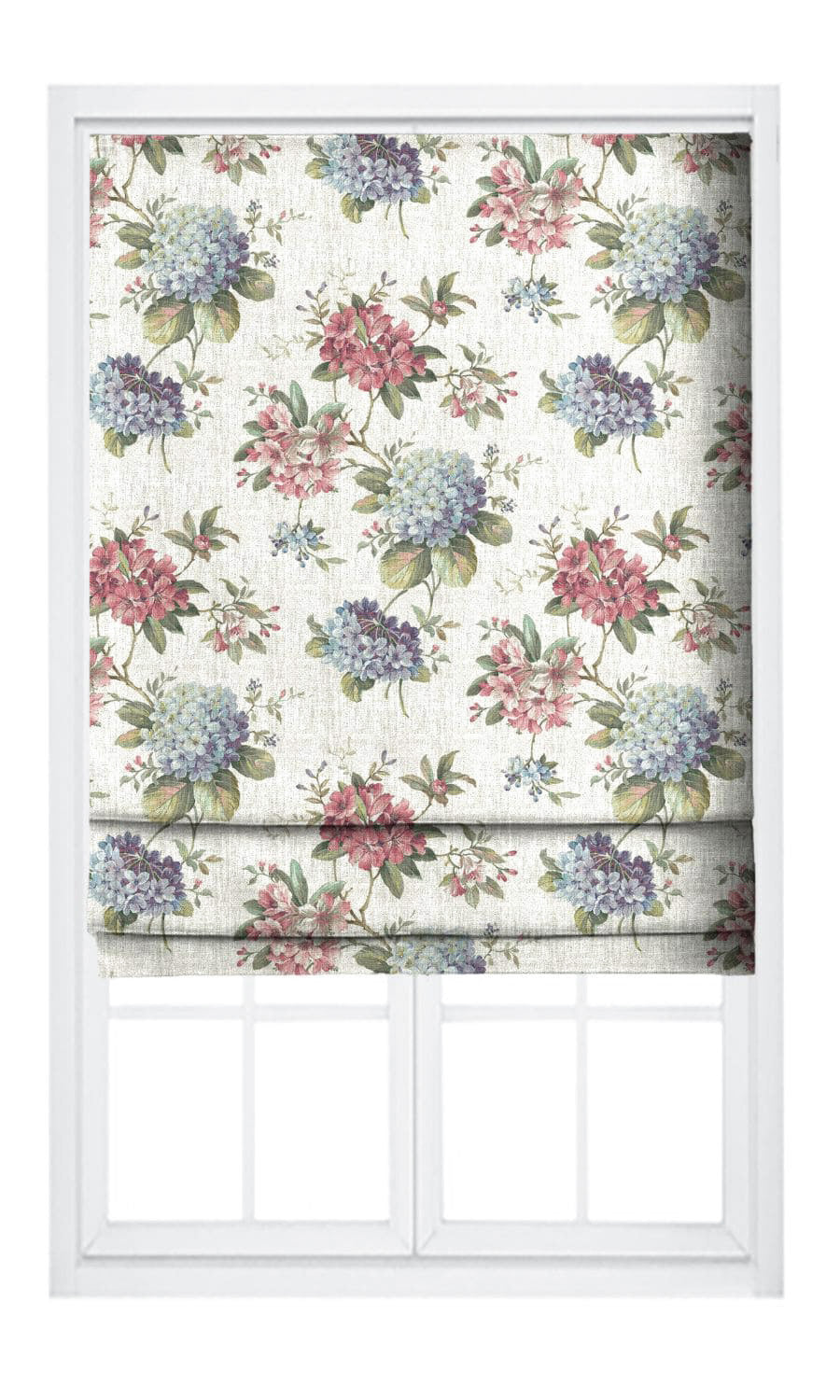 - Add to white rooms: Adorn an all-white room with Whitewater Bay roman shades. Their deep pink and blue accents bring depth and contrast to a white decor while still maintaining the airy feel. The tenderness of the lush hydrangea motif exudes a delicate beauty that will make any area bloom with the romance of soulful English gardens.
