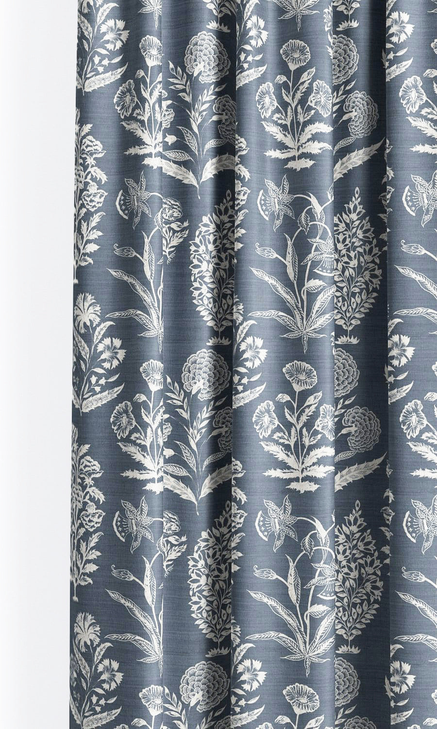 - Layer with sheer panels: Layer Wild Yonder navy blue floral curtains with plain white sheers to create a coordinated color story. The sheers enable the pattern to stand out while ensuring daytime privacy and softening harsh sunlight.