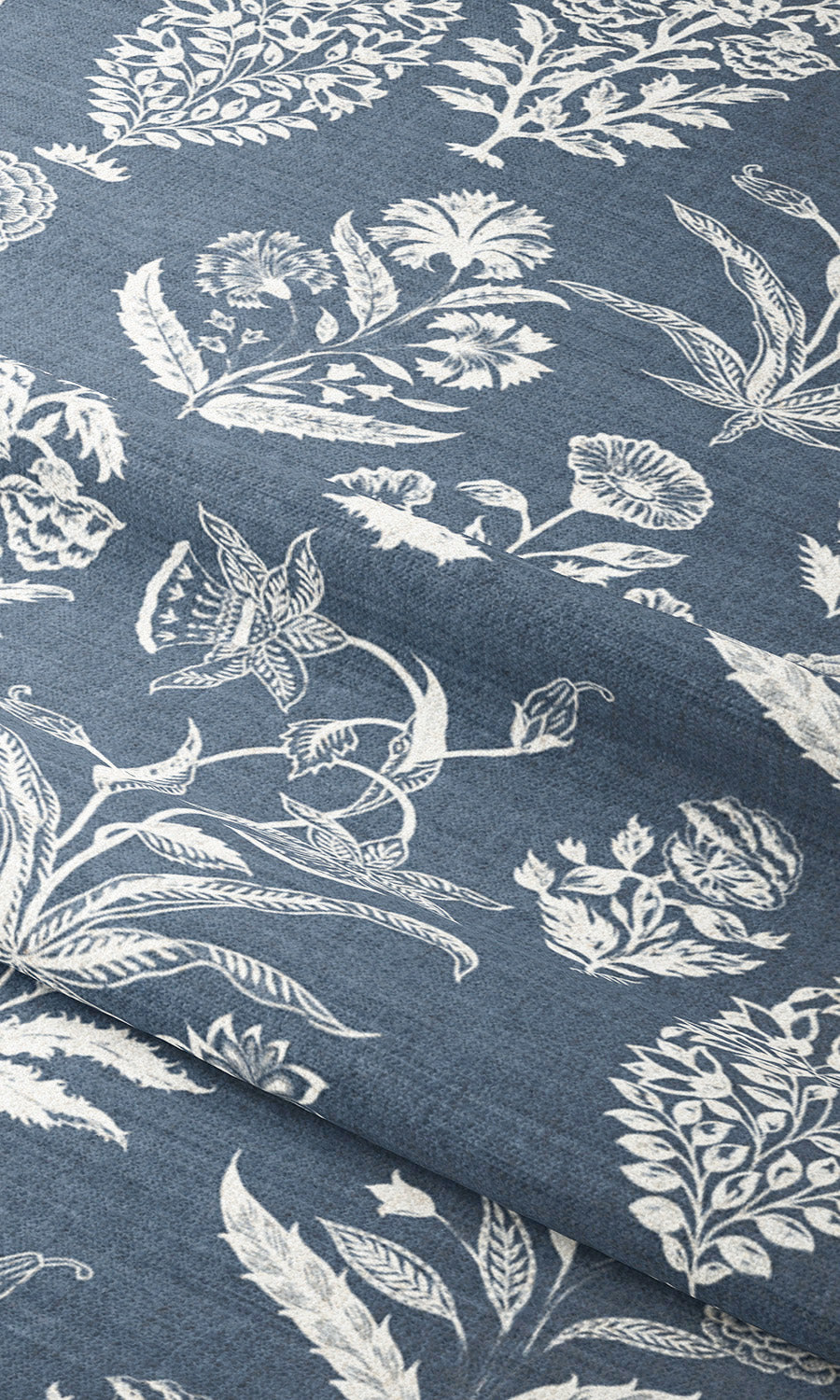 - Its garden of assorted block-print floral silhouettes, evoking the nostalgia of pressed blooms with timeless artisanal elegance