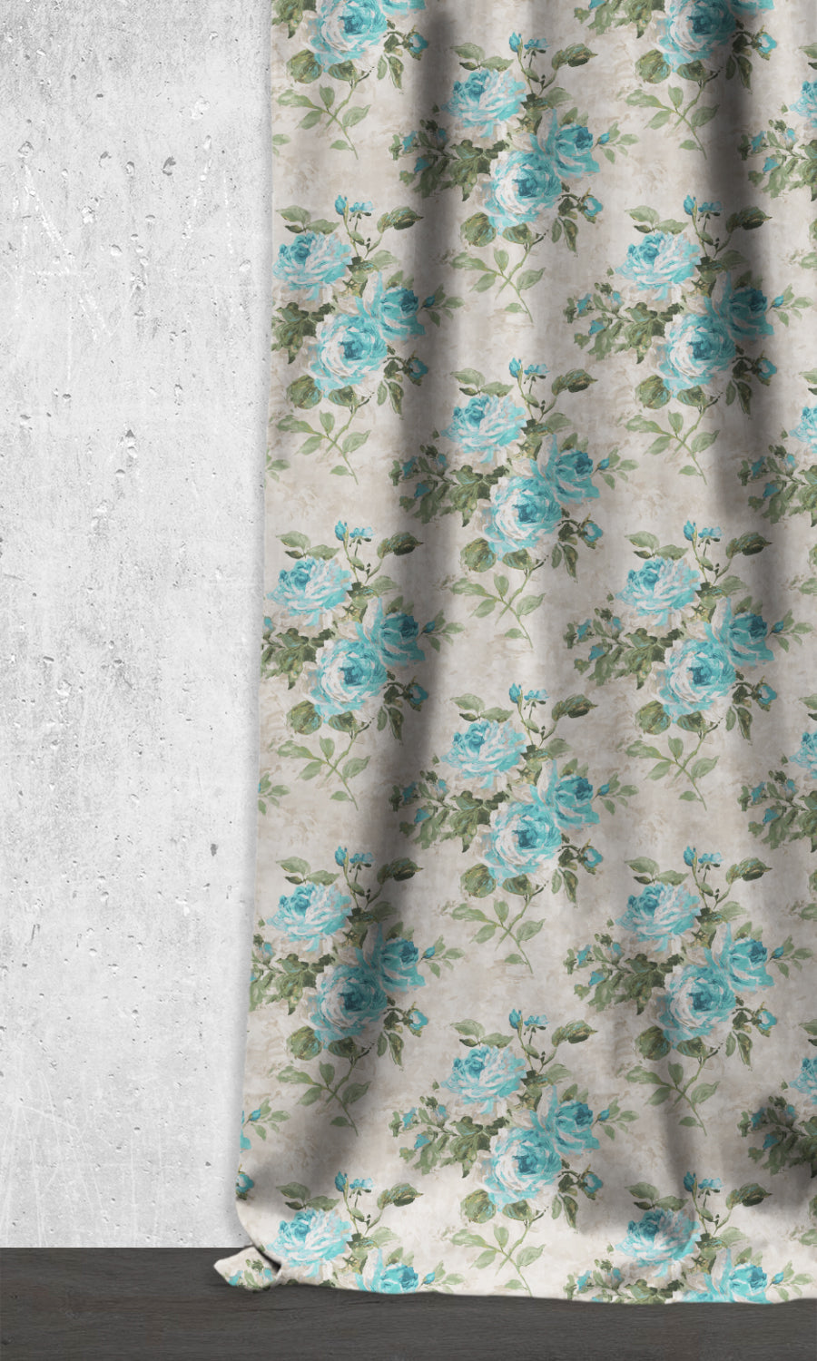 Invite the charm of an English country garden into your home with this floral, dimout fabric. Featuring a lovely rose blossom print, each rosy sprig is carefully wrought with its turquoise blooms and green foliage. Chic enough to be used on its own for draping windows, this 60% dimout fabric is also a smart performer in terms of reducing sunlight and sound inflow for quieter and more serene premises.