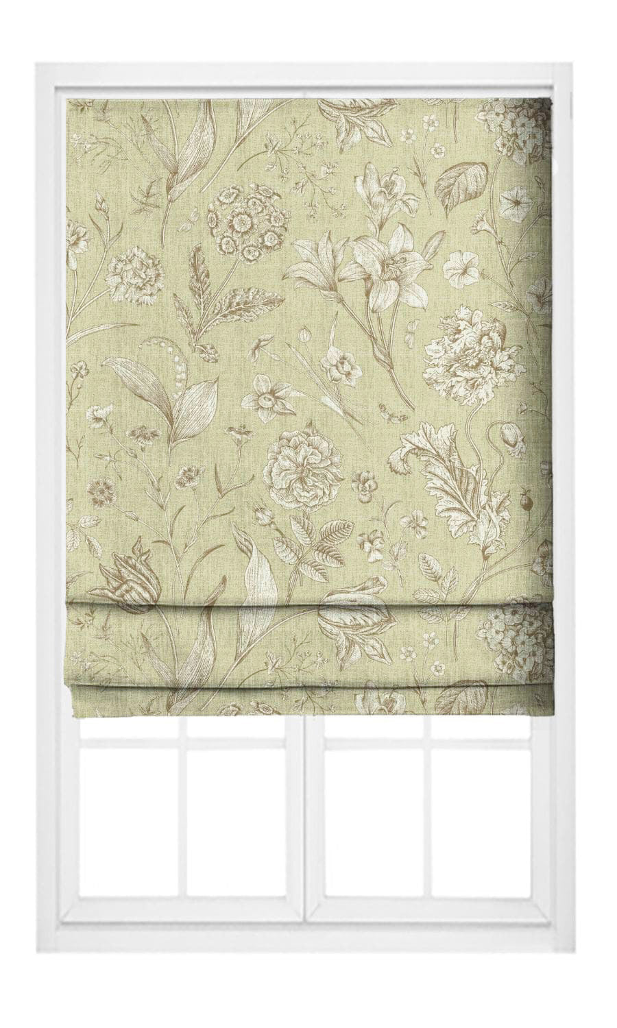 - Add to outdoorsy rooms: Let nature-themed spaces bloom with Willow Green floral roman shades. Their collage of native flowers, rendered with meticulous detail, evokes nature's magnificence as much as skilled artistry. Pair them with sculptural pieces, dark wood accents, and woven textures to carry the theme of natural elegance and craftsmanship forward.