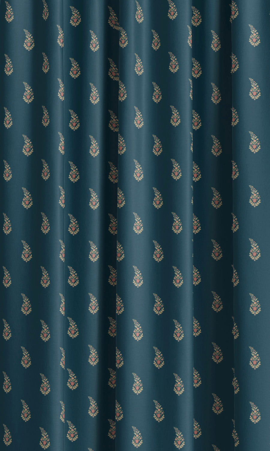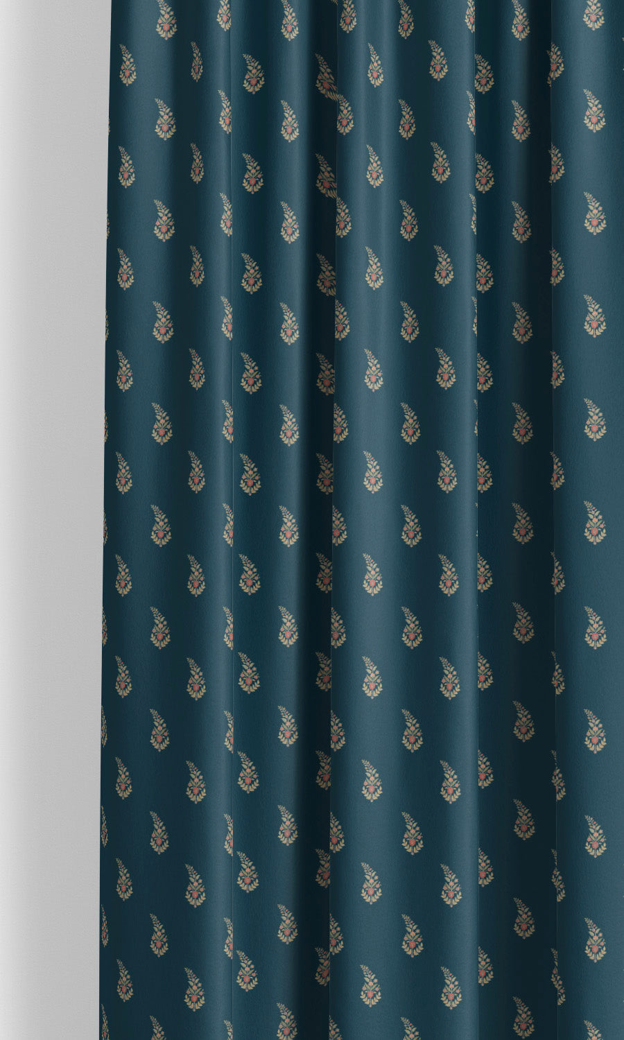 - Pinch & puddle the drapes: Complement the classical elegance of Windblown Indigo velvet paisley floral curtains with the tailored headers of pinch pleat styles. Their embellished pleats mirror the gracefully swirling motifs, enhancing their luxurious sheen with movement and depth. Puddle them for an extravagant touch, and finish the look with ornate hardware to elevate the sense of grandeur.