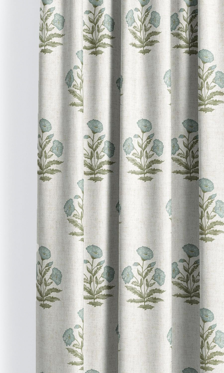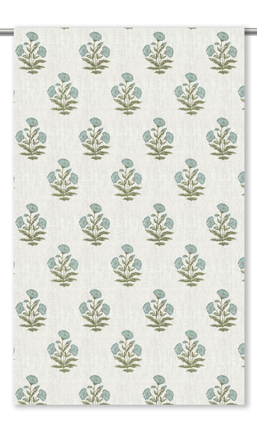 • Its hand-blocked Indian poppy motif, scattering a garden's grace, and stamped with heritage elegance