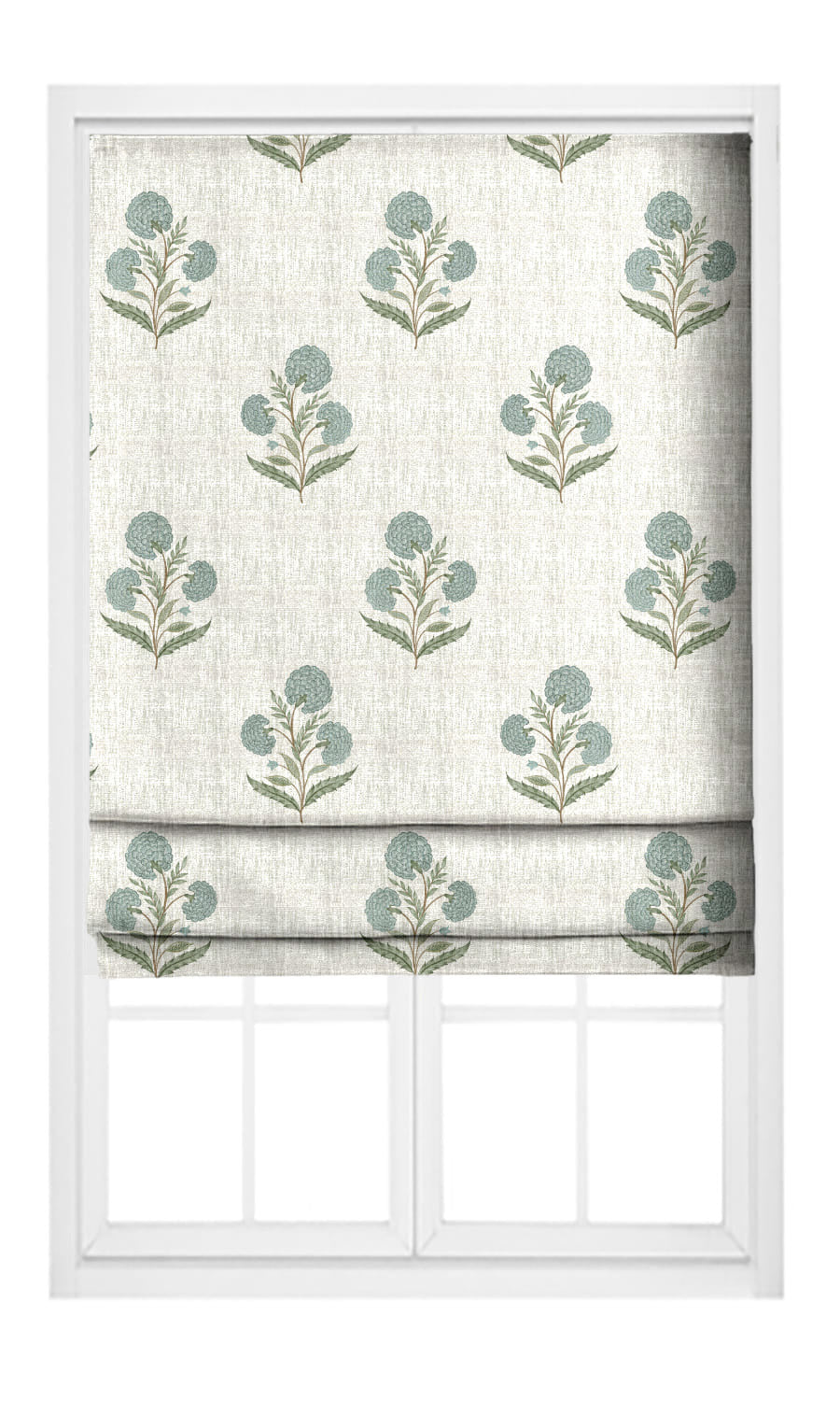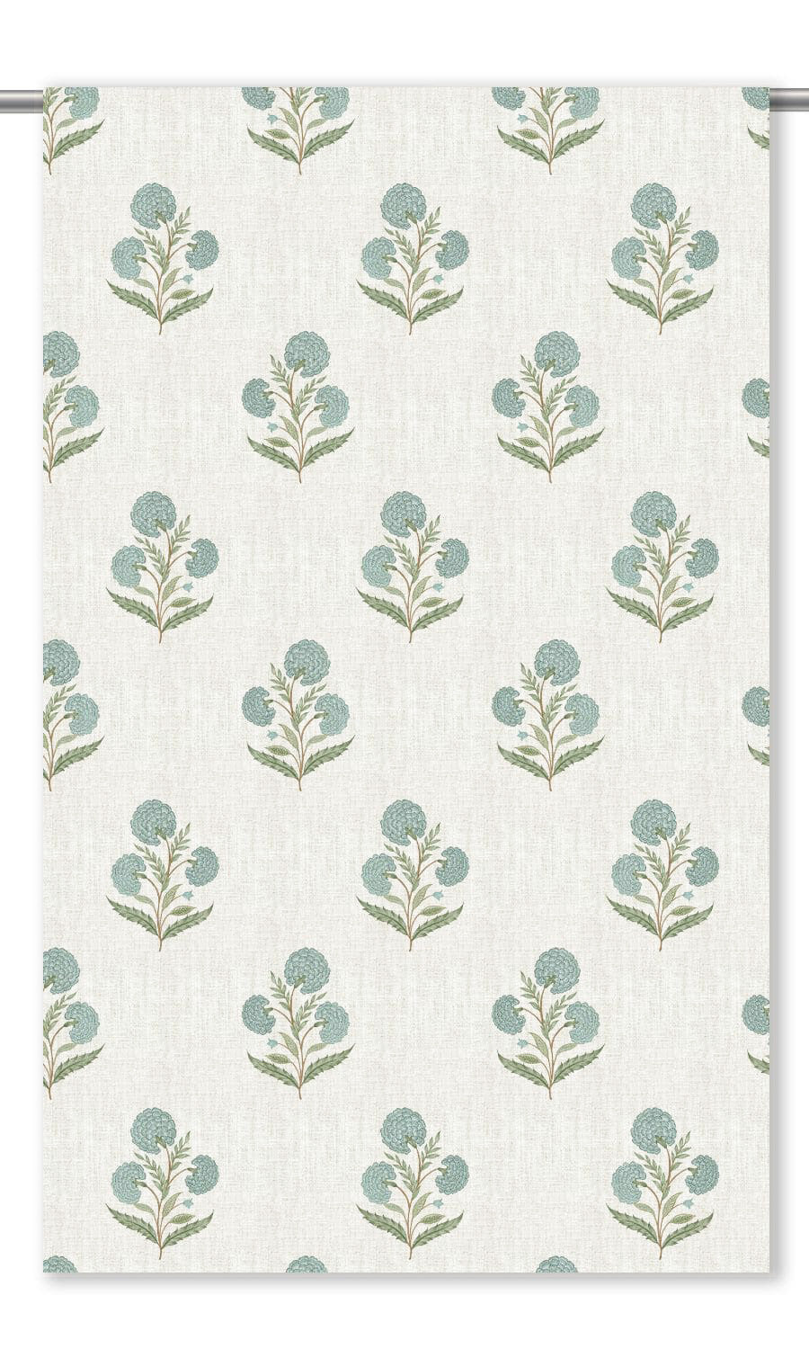 - Pastel blue and olive green unfurl on linen-textured cream, bringing cozy cottage warmth to every sunlit window