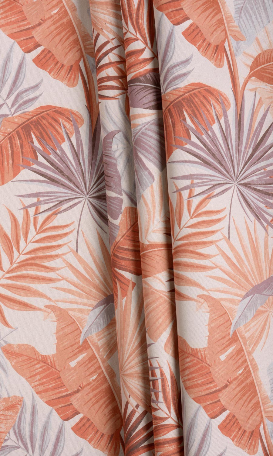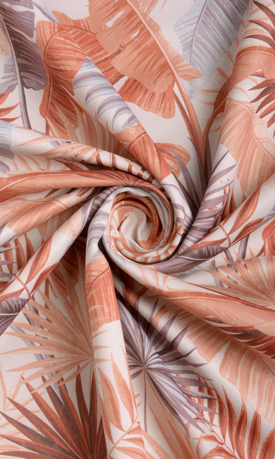 Tropical foliage in sunny hues - a drapery fabric that celebrates the sublime beauty of nature unabashedly in urban terrain! Nothing can cheer up the soul as a visual treat of a prosperously teeming verdure; dressing it up in a lively palette doubles the impact. Browns, oranges and grays shedding their mojo on a white backdrop make this window treatment a timeless decor element.