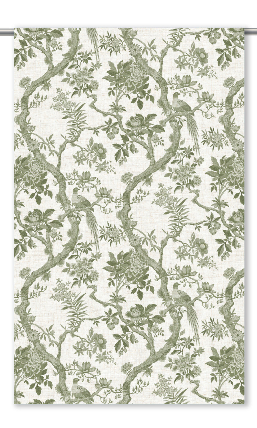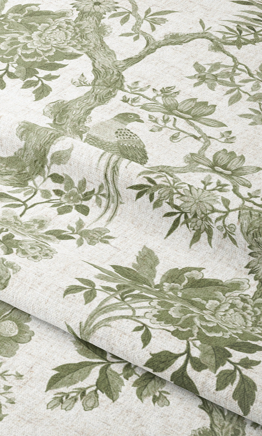 - Its arboreal branches, teeming with lush flowers and songbirds, evoking a classic toile's quiet refinement and chinoiserie's painterly charm