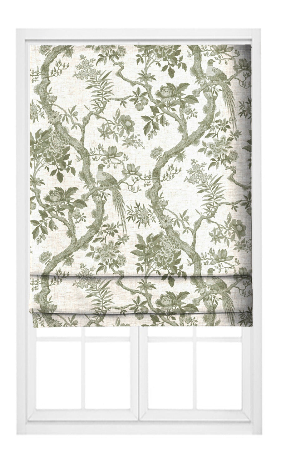• Its arboreal branches, teeming with lush flowers and songbirds, evoking a classic toile's quiet refinement and chinoiserie's painterly charm