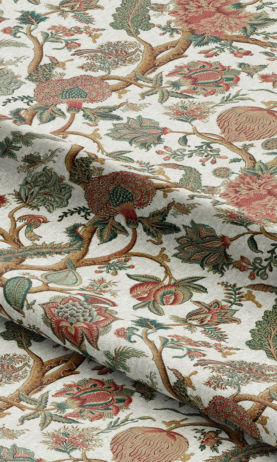 - Its Jacobean floral pattern that paints the home with classical elegance