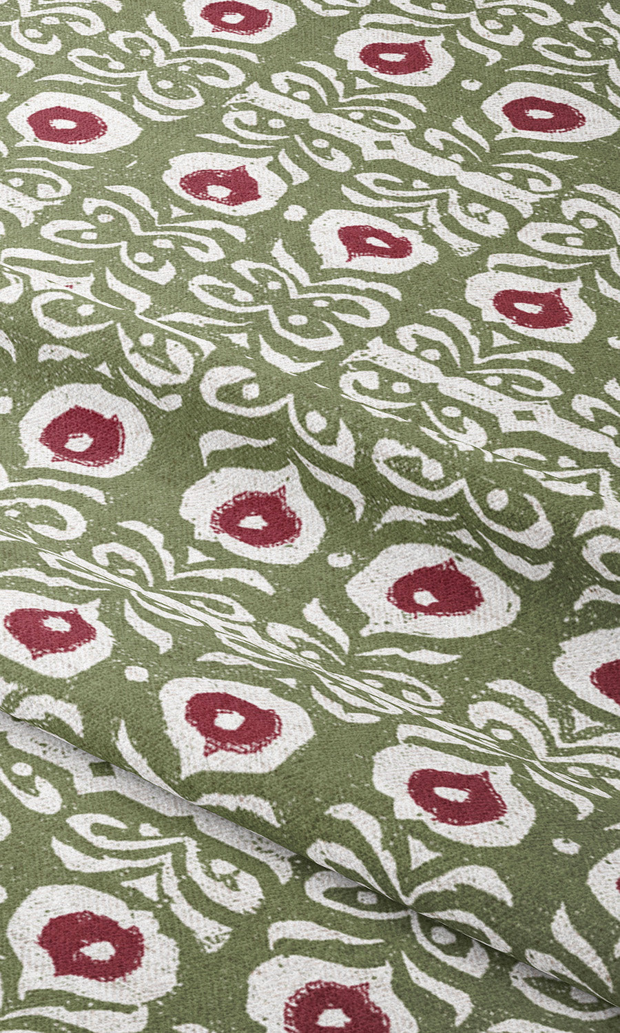 'Yannik Blaze' Fabric by the Yard (Moss Green/ Garnet Red)