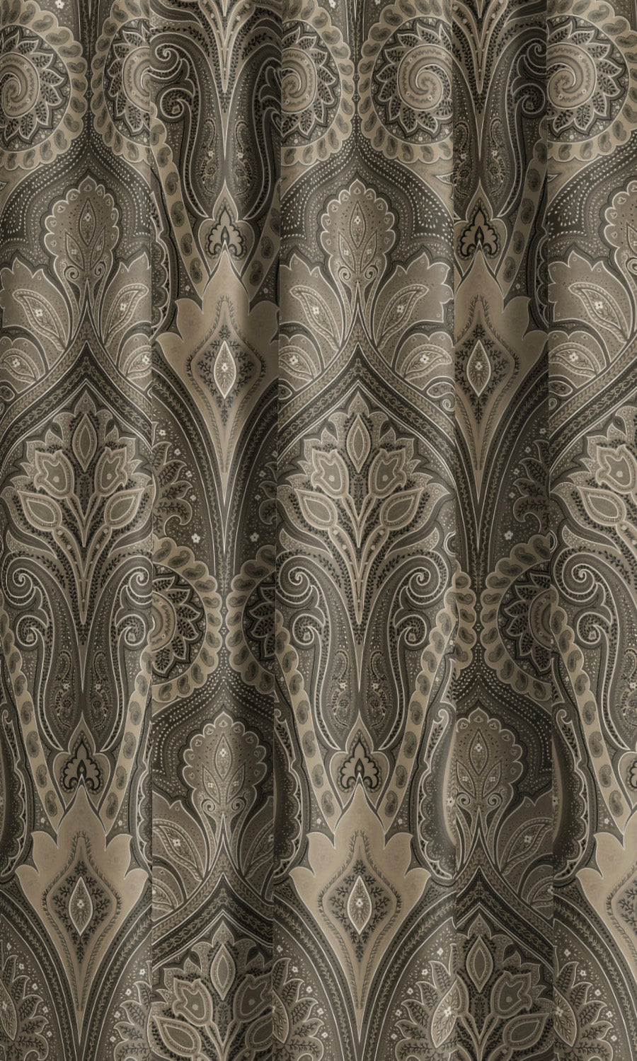 - Its regal fusion of damask and paisley where scrolling arabesques and teardrop whorls entwine in heritage elegance