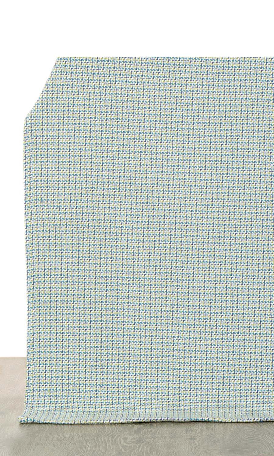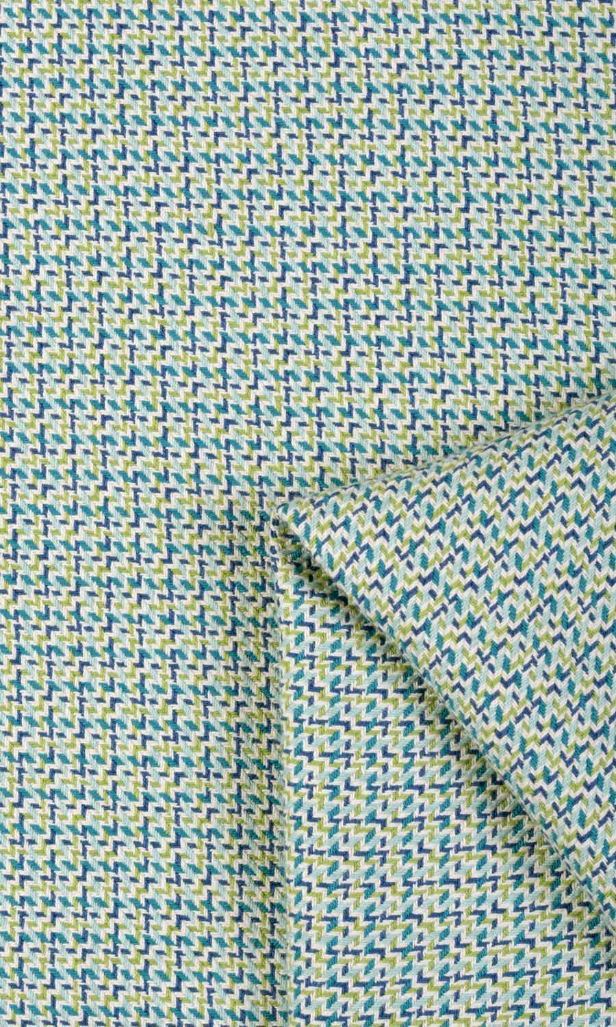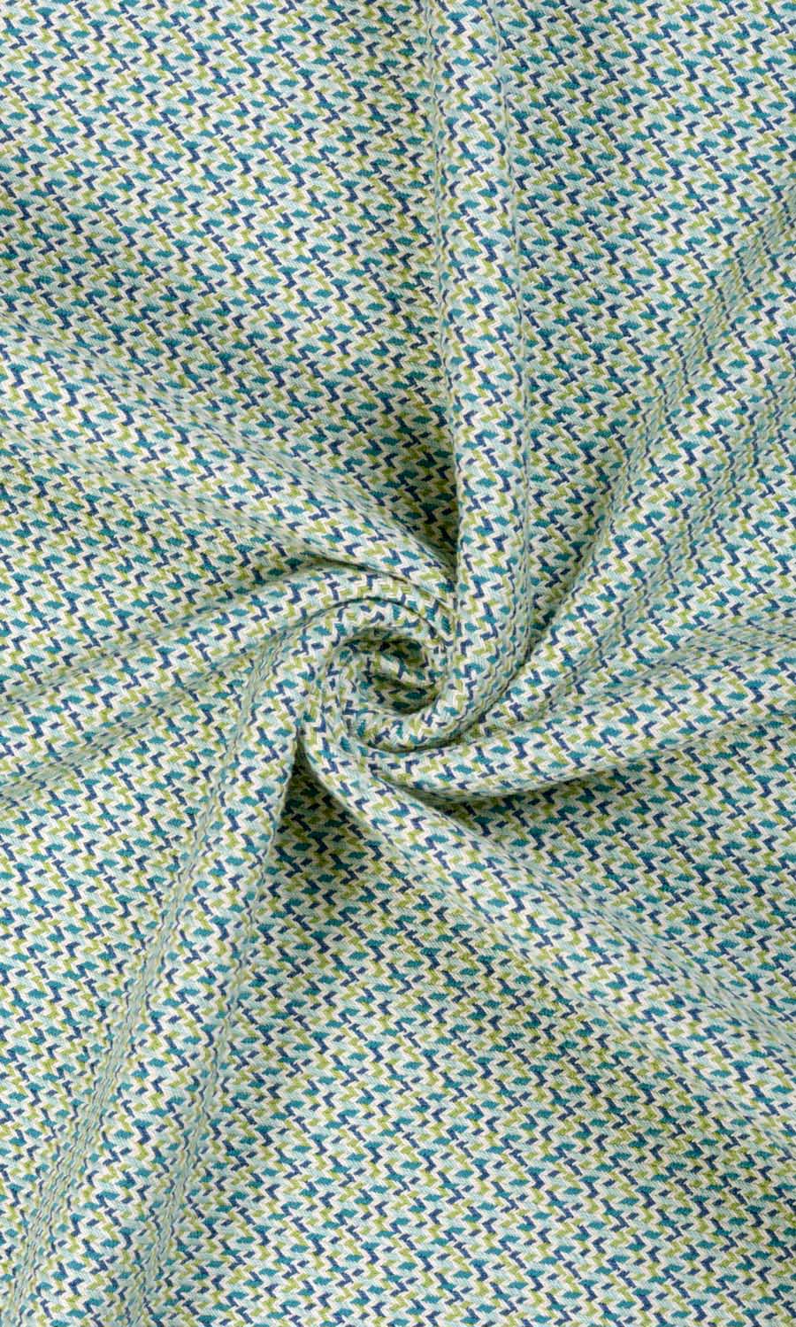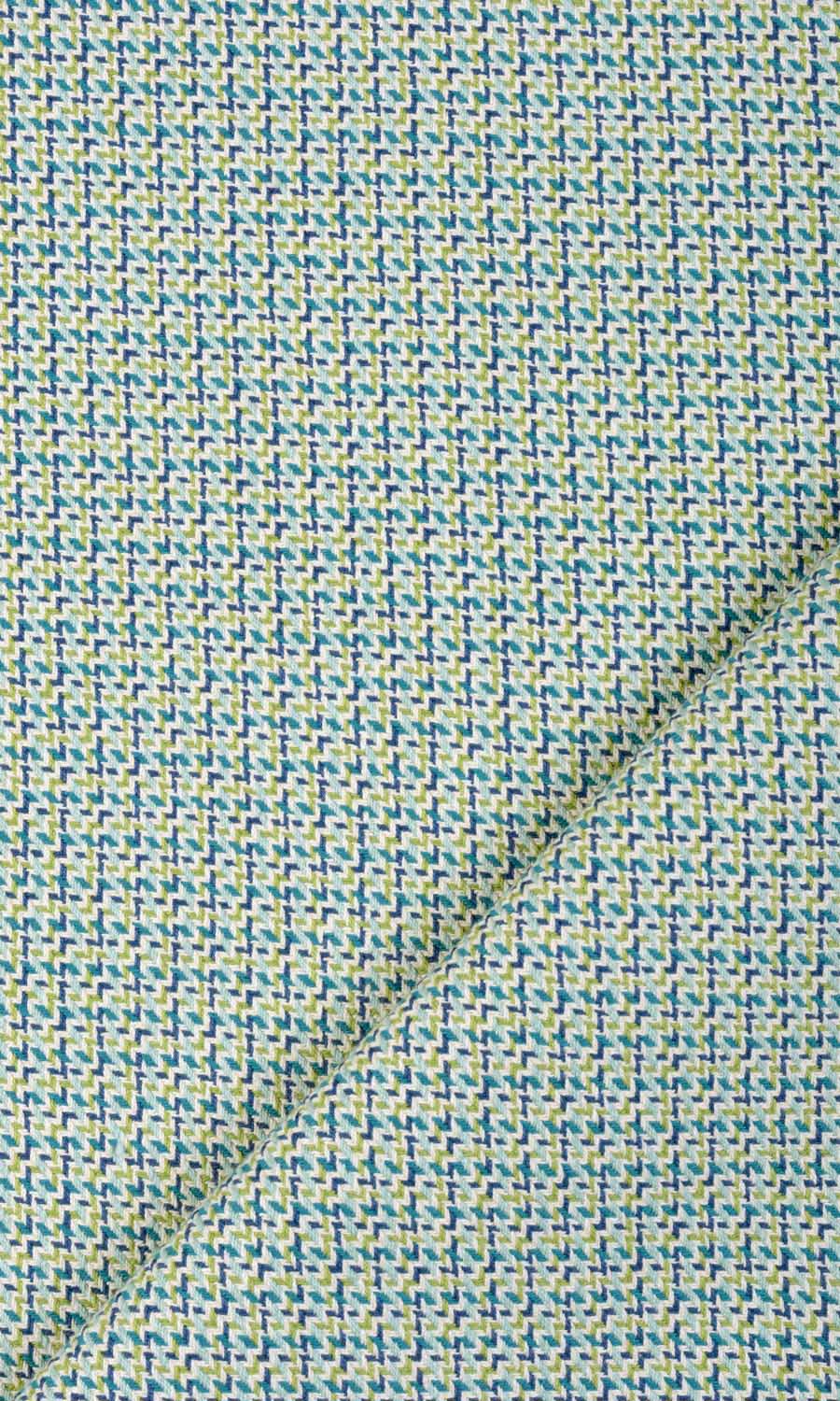Featuring traditional weaves in contemporary color schemes. This pure cotton fabric has houndstooth checks woven in vibrant colors of ultramarine blue, sea green, lime green and pure white. Cheerful in appearance, cool in ambience and smooth in drape, this fabric has everything you want in your drapery fabric.
