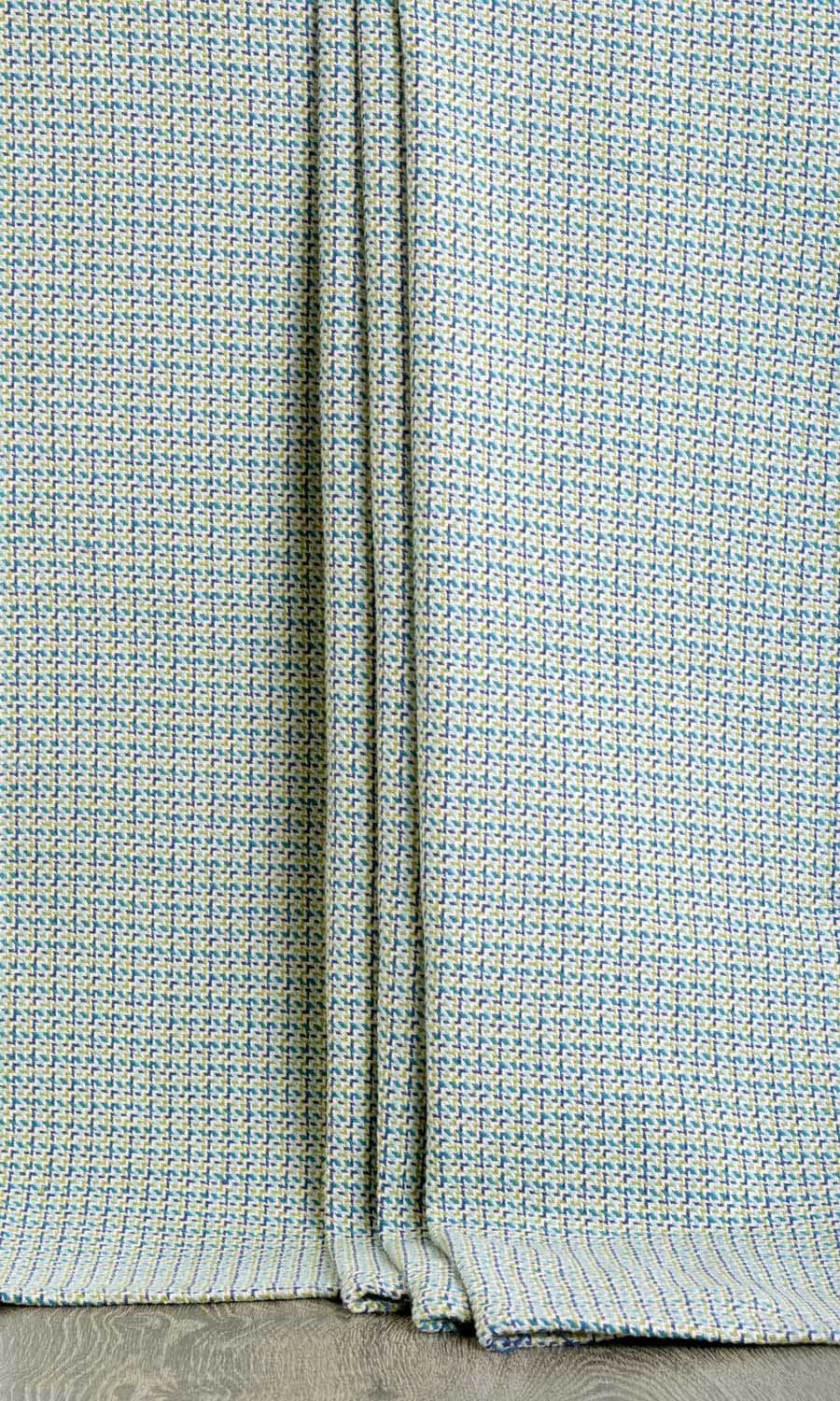 Featuring traditional weaves in contemporary color schemes. This pure cotton fabric has houndstooth checks woven in vibrant colors of ultramarine blue, sea green, lime green and pure white. Cheerful in appearance, cool in ambience and smooth in drape, this fabric has everything you want in your drapery fabric.