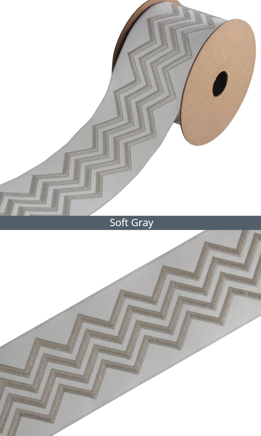 Dress up your custom curtains with an elegant ribbon trim from our 'Chevron' collection of embroidered jacquard trims.